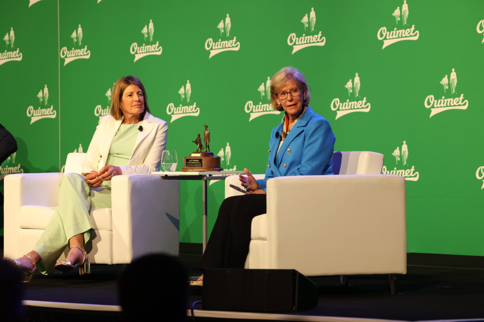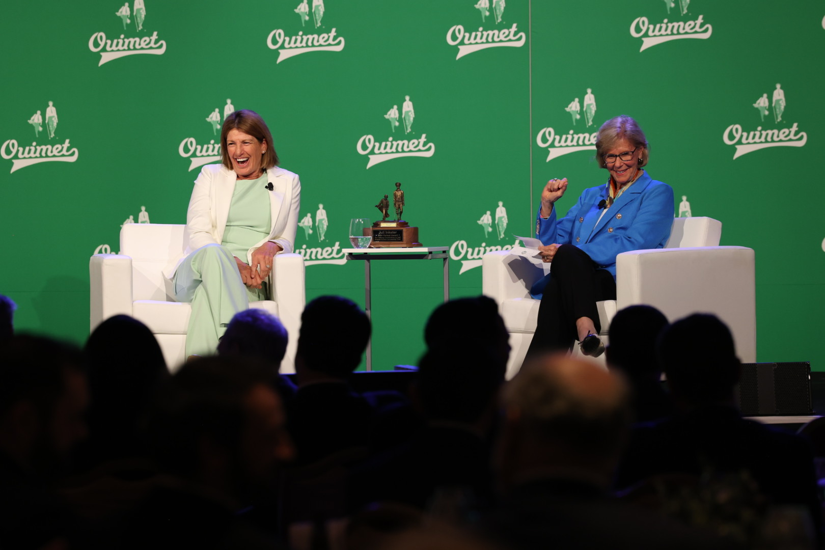 Inkster finished the night with an engaging fireside chat, moderated by fellow Hall of Famer Judy Rankin. The longtime friends discussed Inkster’s start in golf as a 15-year-old employee at Pasatiempo Golf Club in her hometown of Santa Cruz, California. Juli also shared her appreciation for the special named endowed scholarship created at the Ouimet Fund in honor of her parents Carole and Jack Simpson.
