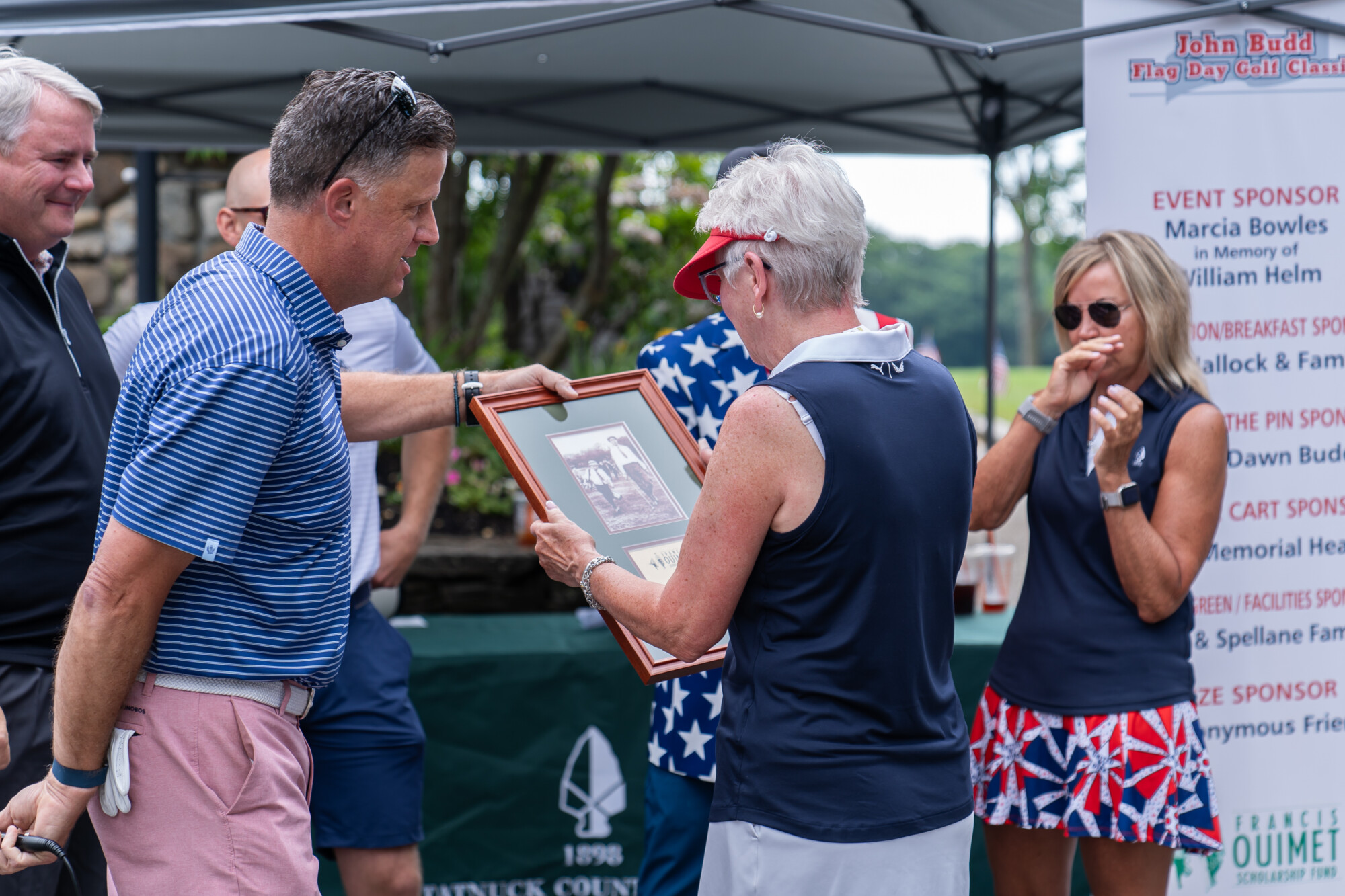At the third annual John Budd Flag Day Golf Classic on June 14, Tatnuck Country Club announced the creation of the Bill Helm & Marcia Bowles Endowed Scholarship, the club’s third named endowed scholarship through the Ouimet Fund.